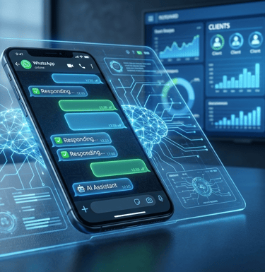 Respuestas automáticas en WhatsApp y Web que filtran consultas, atienden 24/7 y evitan llamadas innecesarias.